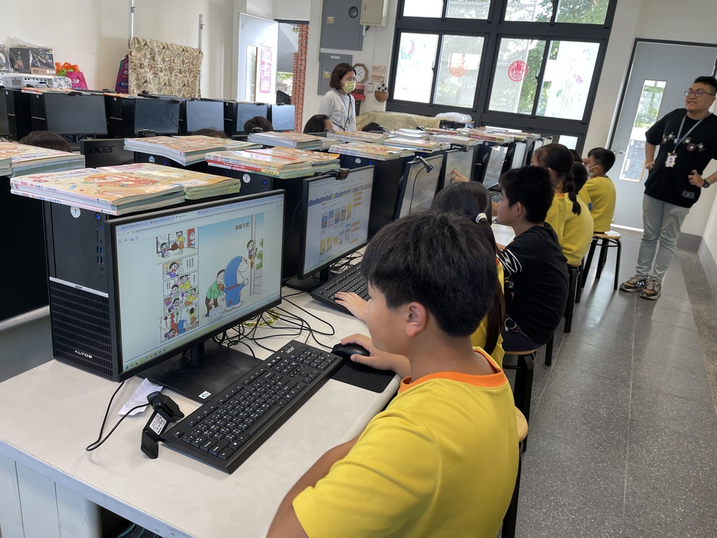 接著,他們示範如何登入電子書平台,從搜尋、借閱,到調整字體,每個步驟都講解得清楚又親切。學生跟著操作,邊按邊討論,氣氛相當熱烈。有同學興奮地分享:「我找到火車的書!」也有人大呼:「原來電子書可以說話,好酷!」學習成效看得見。