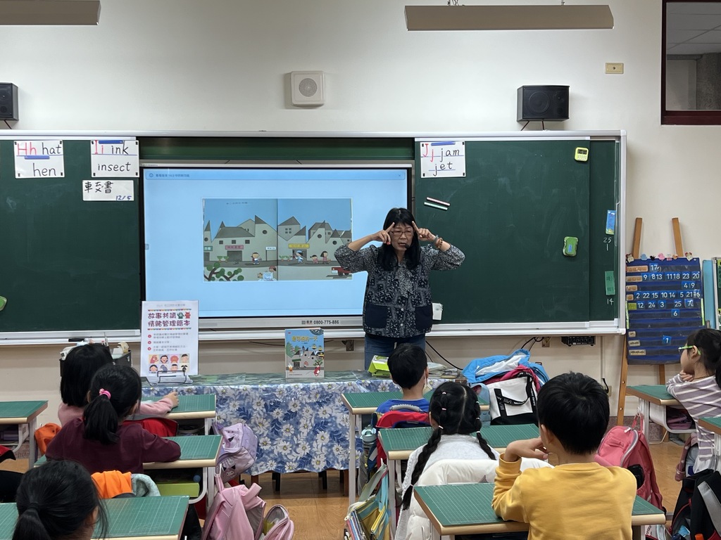 故事後,老師以「情緒管理」為主題,帶領同學聊聊生活中遇到的各種情緒。孩子們勇敢分享生氣、緊張或難過的時刻,也彼此聆聽與回應,展現二年級孩子難得的情緒表達能力,這樣的討論讓學生更懂得觀察自己、理解他人。