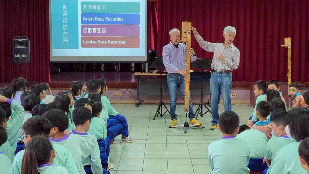 歡樂的氣氛中,全校小朋友們在老師引導下雙手打節拍,也在音樂中跟唱,除了流行歌曲,還認識了大大小小不同樣式的直笛,真是大開眼界,原來直笛還分那麼多種,而且每種都很熟練,功夫了得啊!同時學習了巴洛克時期的音樂,用兩隻老虎搭配卡農的演奏形式進行輪唱,真有趣!講師說每天睡前聽一首巴哈,可以忘卻一天的煩惱,今晚換你來試看看囉!
