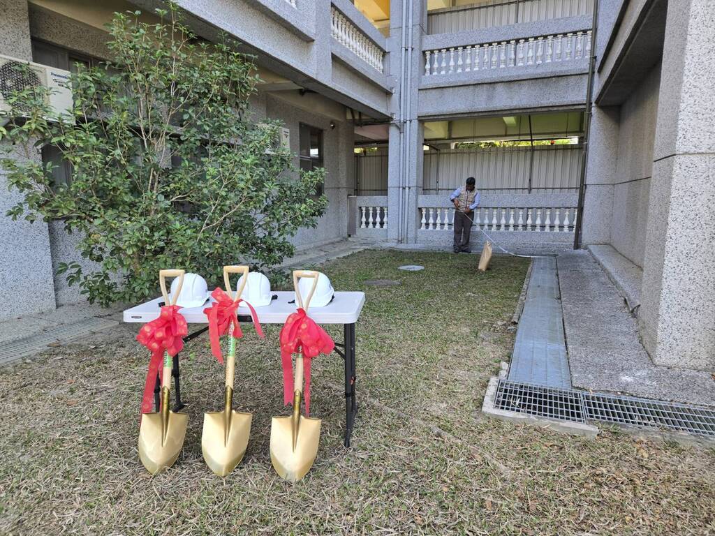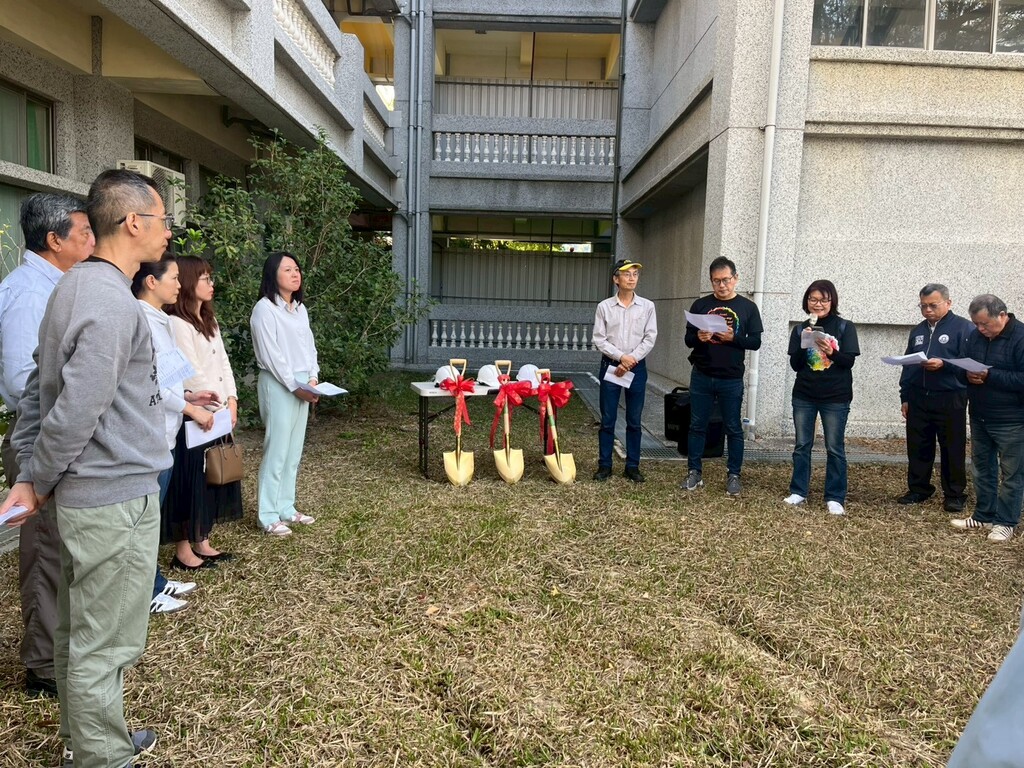 惟新建電梯須向臺中市都發局申請整合雜項執照合併檢討及雜項建造執照,程序繁複。期間因盤點校地管理權而衍生相關租用問題,幸蒙相關單位及地方、中央民意代表協助奔走、協調,在大家共同努力與期盼下,最終順利完成法定空地分割及雜項建照核定等行政程序,114 年 12 月 10 日正式開工。開工當日,校長特邀家長會、社區鄰里、廠商代表及行政團隊在施工區祈願祝福,簡單隆重的動土儀式,誠心祈求本工程自始至終皆能平安順利、諸事如意。