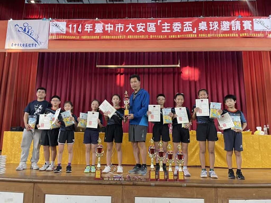 【塗城報導】塗城國小桌球隊捷報頻傳!在甫落幕的「114年臺中市大安區區長盃桌球錦標賽」中,塗城小將們展現平日紮實的訓練成果,在激烈的競爭中脫穎而出,勇奪國小團體組亞軍。
