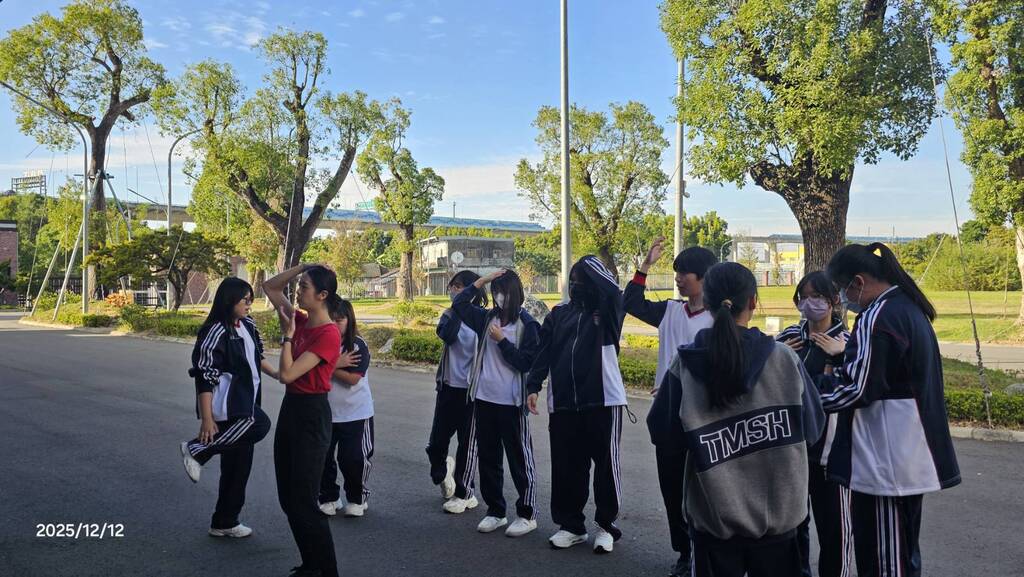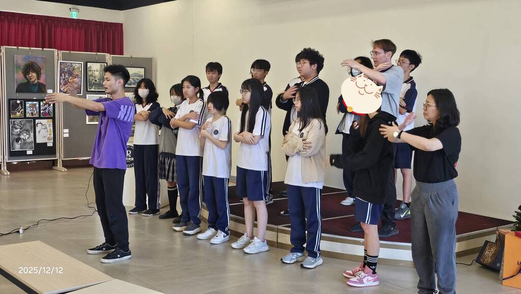 活動包括暖身練習、律動引導、隊形變換與表演片段示範,學生在專業教練與舞者的帶領之下大方嘗試,展現高度投入與活力。即使沒有舞蹈基礎,學生仍能在引導中找到屬於自己的節奏與表達方式,呈現出台灣青少年在藝術教育中的多元與自由能量。