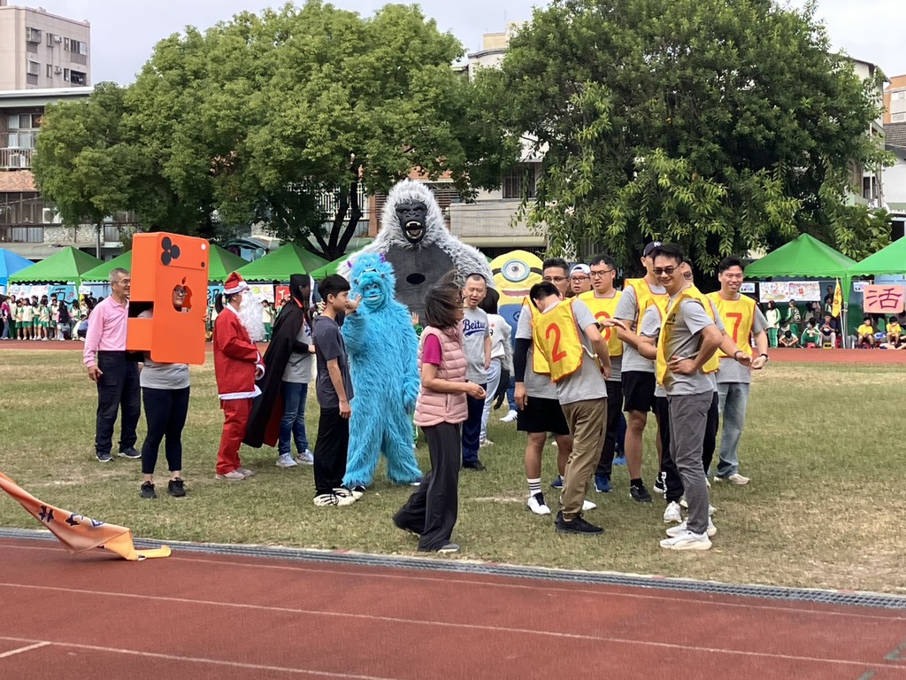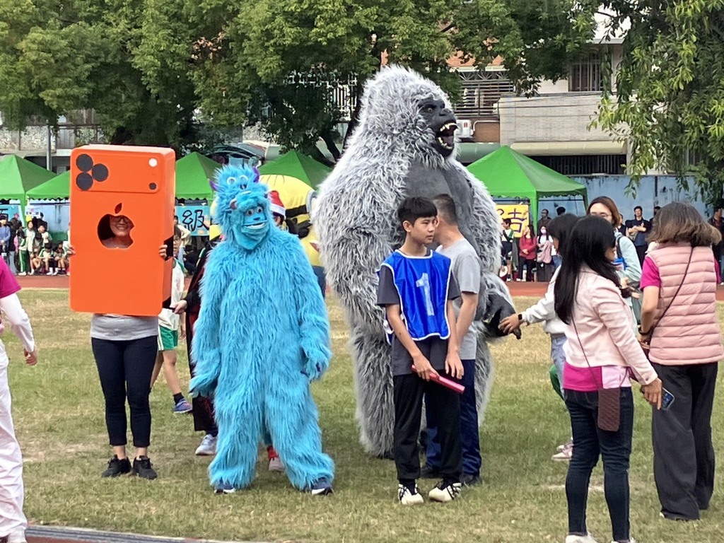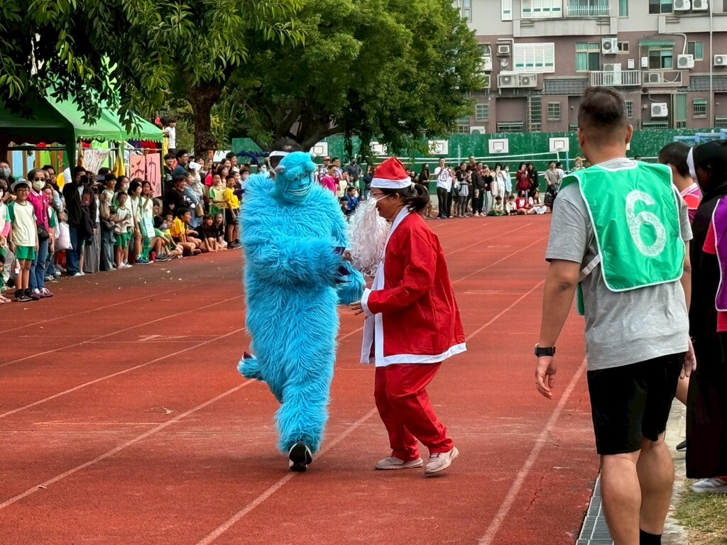 「毛怪也來跑接力…」北屯國小舉辦慶祝122年校慶運動會,精采有趣的賽事重磅登場!由家長會委員們全副「舞」裝的歡樂隊最受矚目,棒次名次不重要 健康歡樂排第一!