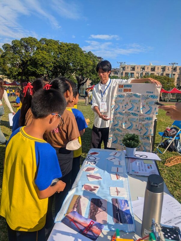 本次校慶「世界好好玩 Give Me Five」系列活動之一,來自中興大學醫學、獸醫、生命科學、土木工程、園藝、科技管理、農學等院所的USR團隊,帶來一系列的闖關活動,包括「橋梁探險隊」透過積木搭橋與九宮格問答,帶領學童認識橋梁結構與工程思維;「混水摸魚」與「河川觀察家」則運用觸覺體驗與實際植物觀察,引導孩子以感官與分類概念認識河川生態;「園藝冒險小勇士」結合園藝療育,讓孩子體驗扦插、嗅聞香草與植物配對的樂趣;「人體奇航」以模型組裝與配對遊戲,協助學童建立人體器官與系統的基礎概念;「生態小尖兵」從保護色、外來種與棲地配對出發,培養環境觀察與生態保育意識;「毛孩守護者」則透過遊戲方式,傳遞正確的寵物飲食、照護與行為情緒判讀知識透過人體器官模型互動的實作。