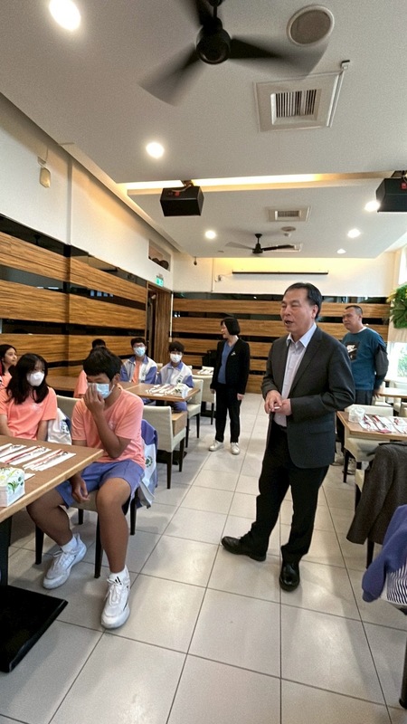 今年為鼓勵學弟妹,蔡院長得知沙中孩子們全力以赴在普及化籃球比賽分區賽及全市總冠軍賽皆獲得冠軍時,特別和蔡副院長一起為孩子們開慶功宴、共進午餐,期許學生在揮灑汗水的同時,也能發揮團隊合作的力量、保有永不放棄的精神以及看到大家為夢想全力以赴的青春模樣。班導師洪老師與同學們一起準備了謝禮:在沙中運動服正面畫了大愛心並以THANKS字為底簽上全班同學的名字,背面是全班大合照的感謝狀,代表沙中與全班滿滿的感恩,感謝蔡院長、蔡副院長與一品堂中醫診所團隊的鼓勵與支持。