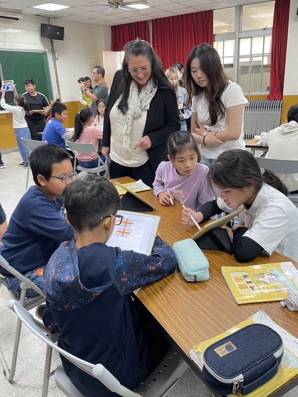 歡迎來自莫札特故鄉的參訪團~上午奧地利福拉爾貝格高等師範教育學院及中教大教授團蒞校觀課,感謝怡琪老師帶領504學生利用平板進行複合圖形面積學習,教授們對於孩子們在平板上移動圖形、探求解方的學習方式非常讚許;感謝菽霙老師與605學生運用e度學習基準量未知問題,孩子們對於四學模式及與e度對話非常嫻熟,也讓國外學者對於因材網輔助學習印象深刻;也感謝晉源主任代表說課、英語老師及實習老師們協助翻譯,讓觀課一切順利。每次觀課,都能發現老師們能運用更多策略,學生們的學習也更加有效,北屯團隊超棒的!
