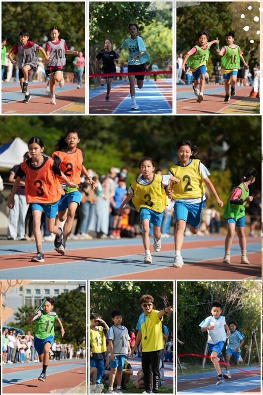 除了精彩表演外,運動場上的田徑賽事更是緊張刺激,三年級學生曾歆雅拉著爸媽到操場觀看短跑、接力、趣味競賽等比賽,全場歡笑與歡呼聲不斷。第一屆親師躲避球賽,教師與家長龍爭虎鬥,最後二比一由教師隊險勝,不僅是大人君子之爭,也是孩子觀摩勇敢堅持的最佳典範。