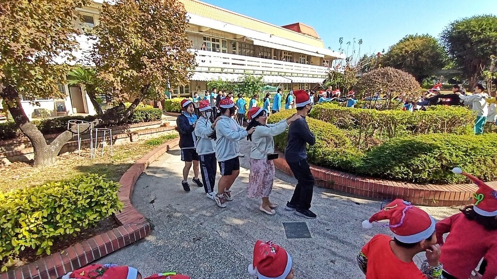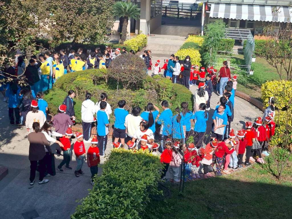 最溫馨的是,這不只是孩子的舞台,師長與大哥哥、大姊姊們也一起加入行列,大家手牽手、心連心,在聖誕音樂中快樂起舞。這一刻,年級的隔閡消失了,取而代之的是彼此傳遞的溫暖與祝福。