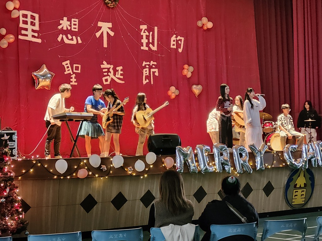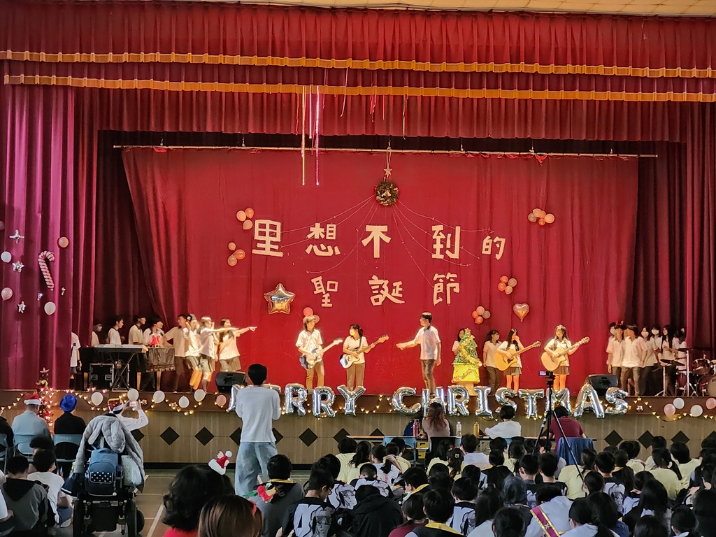 為迎接溫馨的聖誕佳節,本校於12/29在活動中心舉辦「高中部歡慶聖誕創意表演競賽」,活動由自治會學生精心規劃,各班級與社團熱情參與,帶來歌唱、舞蹈、戲劇等多元表演,現場氣氛熱烈。各班同學們發揮創意與團隊精神,以精彩演出展現青春活力,也讓全校師生在節慶氛圍中,為校園增添濃厚的聖誕歡樂氣息。