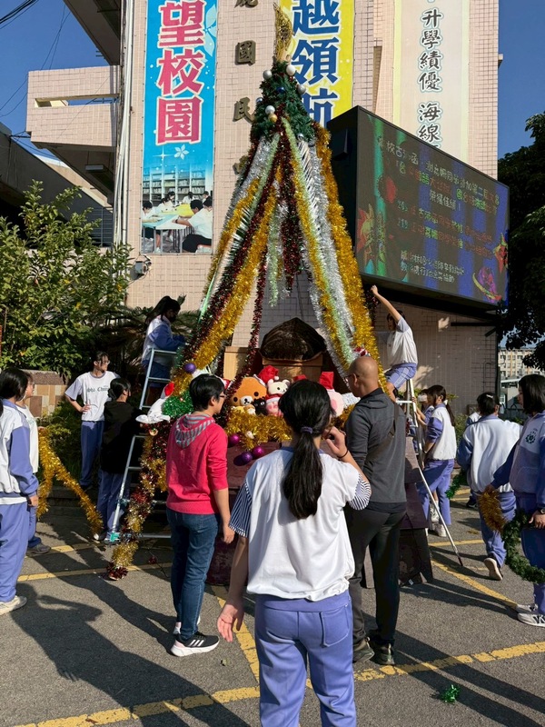沙鹿國中的孩子們發揮無限創意,利用課桌椅排出一棵專屬於學校的聖誕樹 🌟 校門口那棵超吸睛的聖誕樹,要特別感謝童軍老師州哥與彥青老師帶著孩子們的用心佈置與協助 🎄 而國三教室外,「聖誕老人氣球」悄悄爬上樓送祝福,則是由教務處老師、科技中心主任,以及業師傅們 默默協力完成,滿滿的心意,只為在模擬考前,替孩子們加一點安心、添一點好運,祝福國三的孩子們——穩住心情、全力以赴,全區模擬考加油!