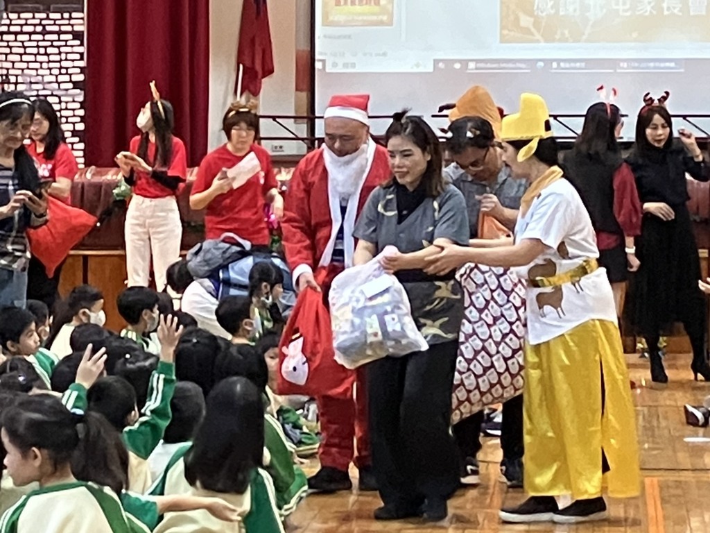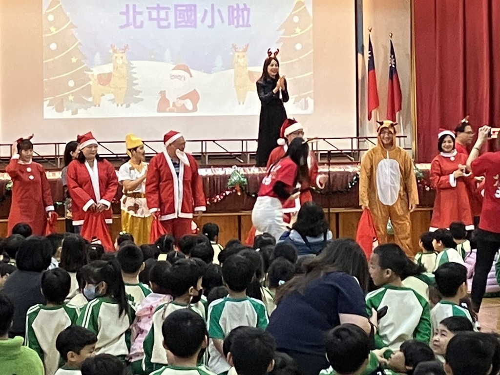 哇!聖誕公公 阿姨們到北屯國小嘍!北屯國小家長會團隊化身成愛的團隊,送禮到北屯!輔導室辦理歲末感恩活動,邀請地表最強的北屯國小家長會團隊,盛裝打扮,化身成愛的團隊,送智慧餅到各年級,祝福孩子們迎向成長 新年快樂!