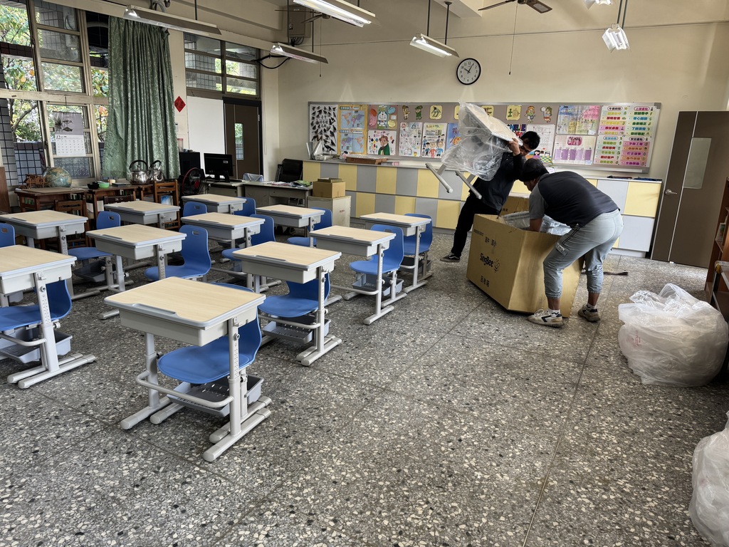 配合臺中市政府教育局「陪你長大」計畫,本校高年級新式課桌椅已順利到貨入班! 感謝總務處姿薇主任與翊妏組長的妥適規劃,及事務員及高年級師生的協力,有效率的完成汰換任務,過程順利。 這批新式課桌椅採用符合人體工學設計,能依孩子的身高體型彈性微調,讓學習更輕鬆舒適,提升學習環境品質。 未來亦將持續配合教育局計畫,陸續安排中、低年級課桌椅改善,逐步完成校園設備升級。