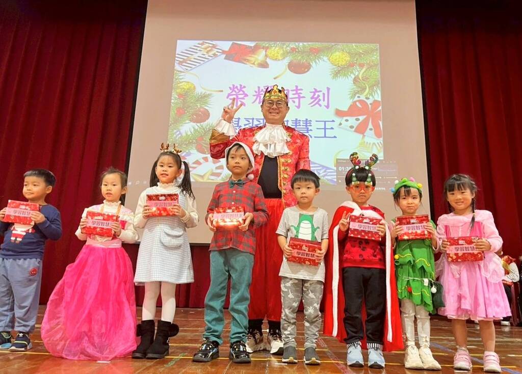 嚴之彤主任說,由校內師長與家長會進行示範開場,接續各班的溫馨親子創意走秀即展開了精彩序幕,後續進行聖誕歌曲帶動唱,過程中除了精彩的親師生走秀,更有著冰雪國王與皇后、聖誕老公公、艾莎與聖誕禮物小精靈,進行期末聯歡表揚頒獎給全園幼生們,大夥兒都開心極了。