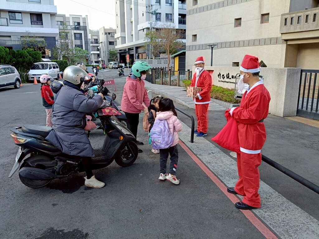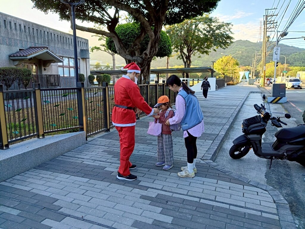 清晨上學時段,校長與家長會長、輔導會長及常委扮演聖誕老人,親自在校門口迎接孩子,並發送象徵祝福的糖果。在寒冷的清晨,這樣突如其來的驚喜,讓許多小朋友一早便露出燦爛笑容,開心的向校長與會長及常委道謝;陪同上學的家長們也拿起手機拍照,為這樣溫暖又有趣的聖誕節序幕留下回憶。