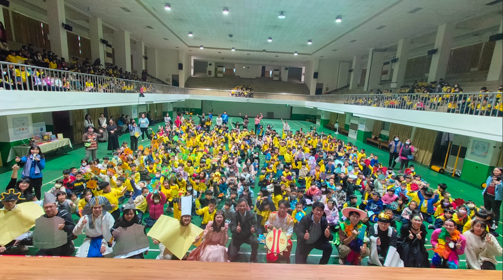 活動亦融入忠孝國小推動的雙語生活化校園理念,外師 Teacher Grace 擔任導讀角色,過程以中英雙語引導學生認識故事背景與核心精神,讓閱讀理解自然延伸到戲劇表現,語言學習在真實情境中悄然發生。