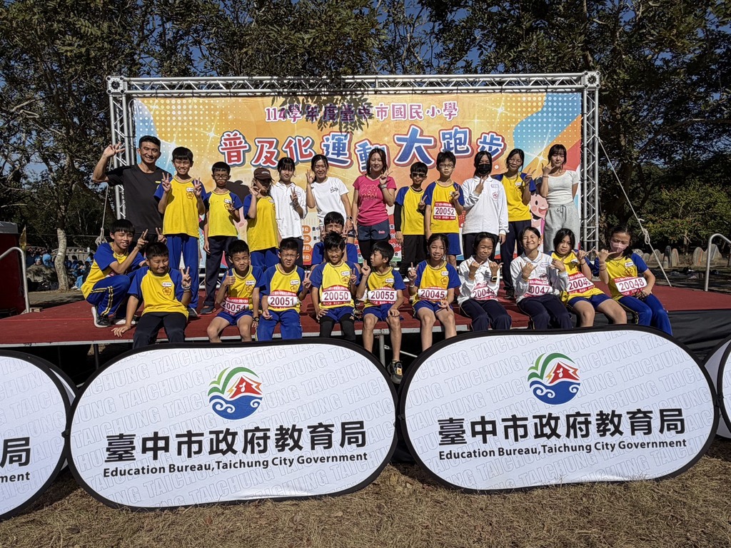 12月23日(二),李佳旆老師帶領六年二班學生前往臺中都會公園,參加臺中市大跑步競賽。本次賽程全長1.3公里,學生們精神抖擻、步伐穩健,在冬日暖陽下展現優異的耐力與毅力。校長也特別到場陪跑,與學生一同完成全程,用行動支持孩子、加油鼓勵。