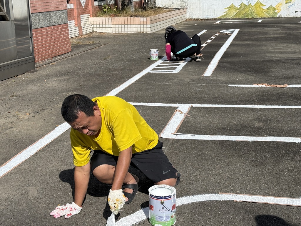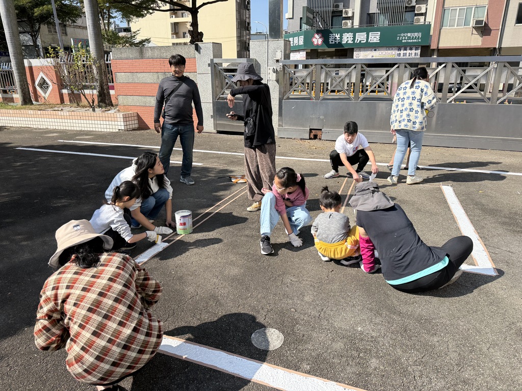 本次場地順利完成,特別感謝教育局林憶涵課程督學的引薦,由王錦懋老師帶領的花蓮交通安全志工隊,犧牲假日休息時間,清晨四點即自花蓮出發,長途前來臺中,無償投入校園交通安全場地的專業劃設。當天,校長、學務處同仁、總務主任、學生與校友也齊心協力、捲起袖子共同參與,分工合作、揮汗付出,展現高度凝聚力。王錦懋老師也分享,自己曾走訪多所學校協助交通安全場地規劃,首次看見一所學校能在假日動員如此多成員共同投入,充分感受到這是一支相當優秀且有向心力的學校團隊。