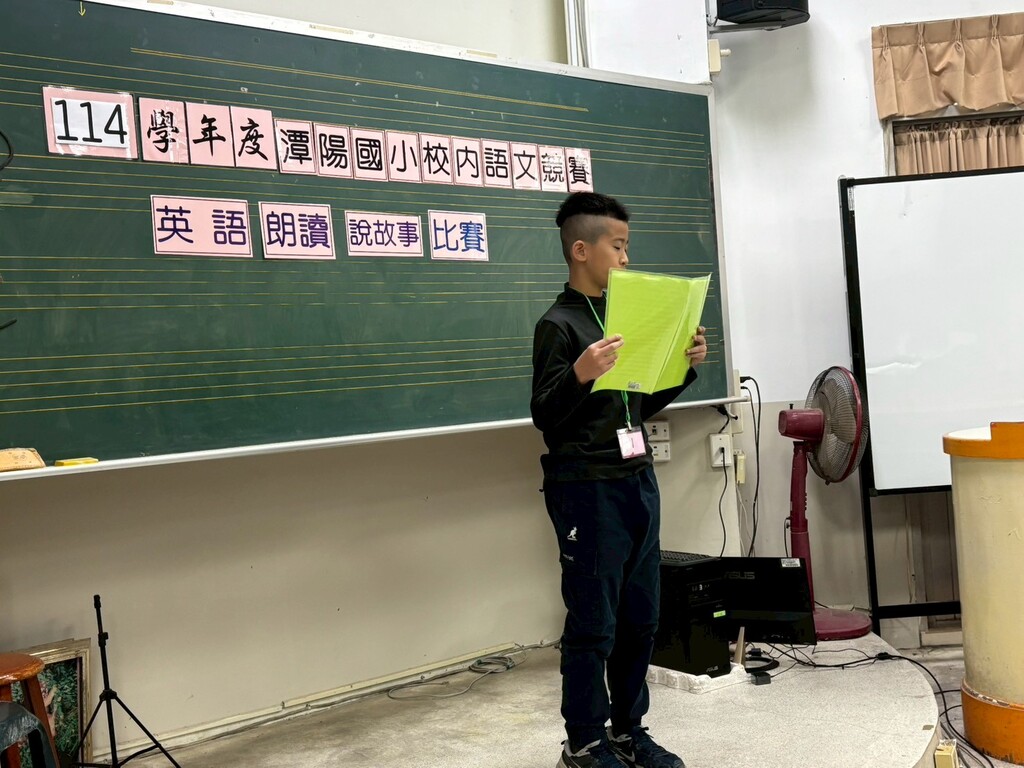 冷冽的冬日早晨,潭陽國小的校園裡卻盪漾著一股熱烈而專注的氣息。為了提供學生展現多元語言能力的舞台,學校於今日舉辦了「114學年度校內語文競賽」,其中最受矚目的莫過於四年級英語朗讀與五年級英語說故事比賽。