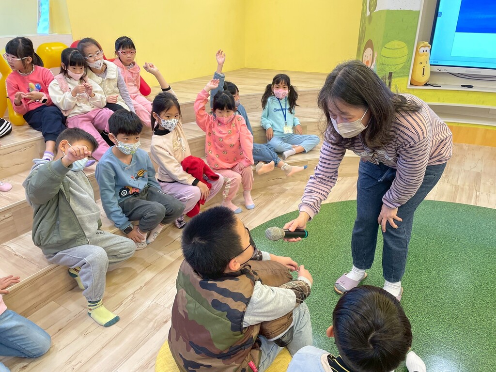 故事中提到老祖宗對後代的叮嚀,不只是生活的提醒,更蘊含「取之有度、不貪心」的重要觀念。老師透過生動的說故事方式,引導孩子思考:海洋帶來豐富的魚蝦與資源,但若人類過度捕撈、不懂節制,海洋生態將受到破壞。孩子們專心聆聽,也能說出「需要的才拿」、「留下來給別人」等想法。