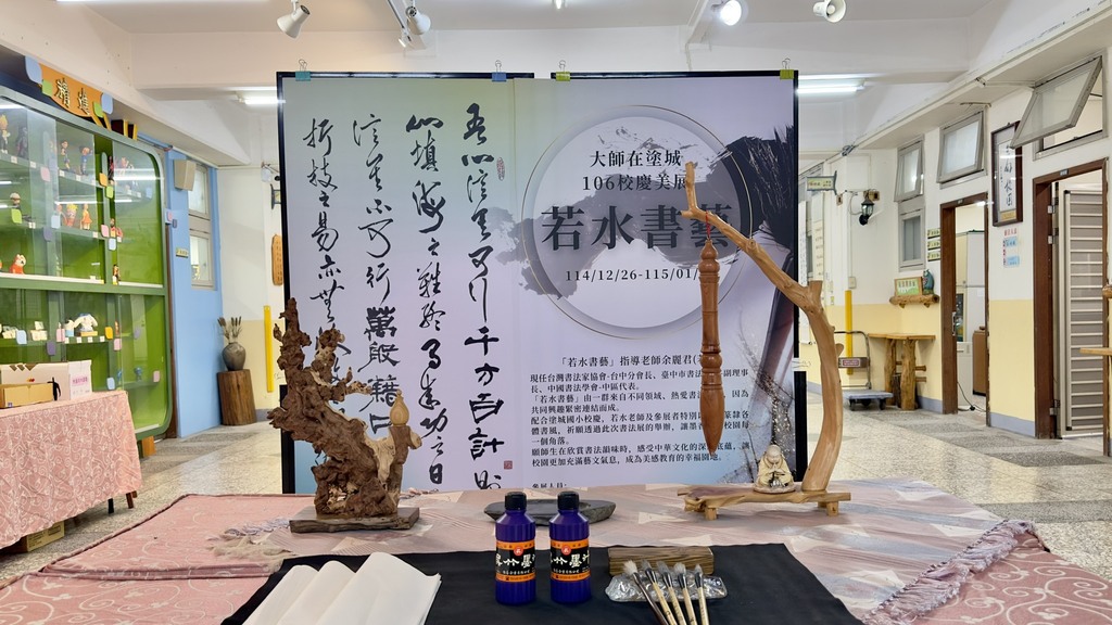 【塗城報導】適逢塗城國小創校106週年校慶,校園內不僅有熱鬧的慶祝活動,更添一抹濃厚的藝文氣息。為涵養師生美感素養,校方特別策劃「若水書藝」書法展,並於日前(12月26日)在校長室外走道盛大舉行開幕典禮,吸引眾多師生駐足欣賞。