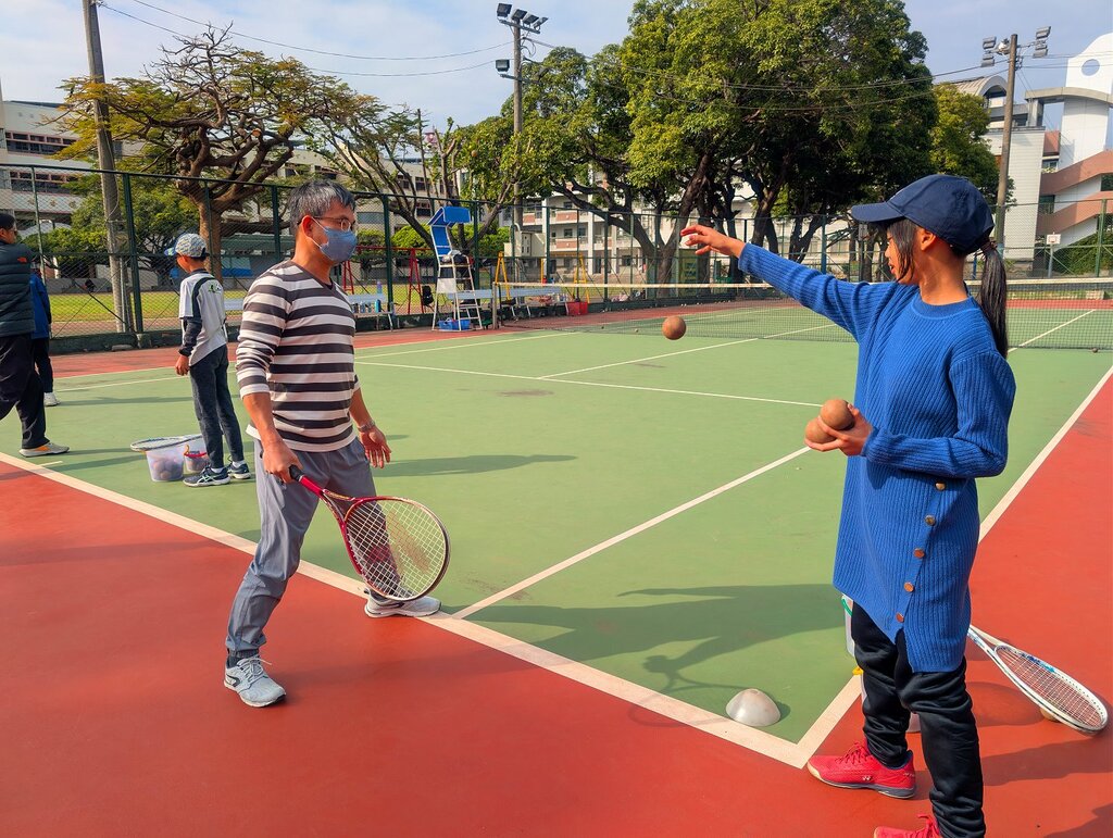 聞道有先後,術業有專攻,今天國光國小的老師在週三下午有場軟式網球的研習,在吳春婷專任教練的指導下,所有的軟網隊球員化身成小小助理員,指導老師們體驗軟式網球。 原本課堂上的老師,轉化身份成為軟式網球的初學者,擔任小助理的學生還是難免緊張,老師變學生,偶爾揮拍落空,也只能哈哈大笑,繼續努力學習,雖然今天的天氣很冷,但是球場內卻很溫暖,笑聲、鼓勵聲不斷,也感受到彼此擊拍的一瞬間。