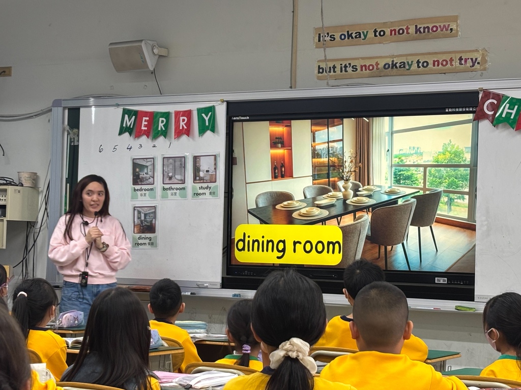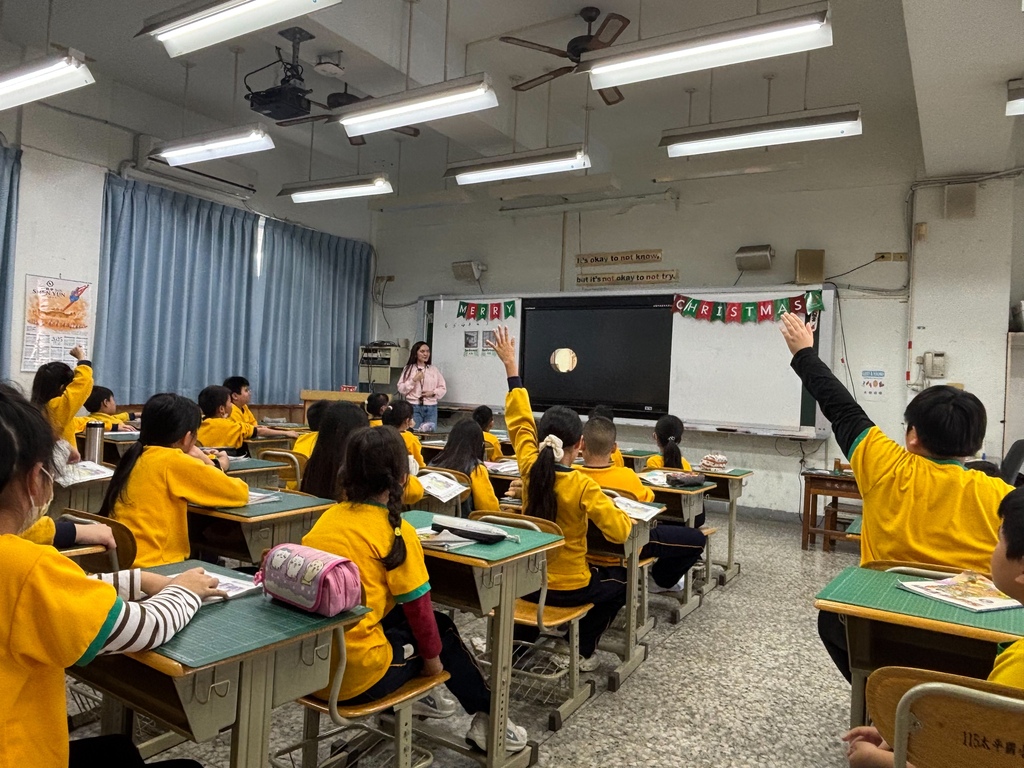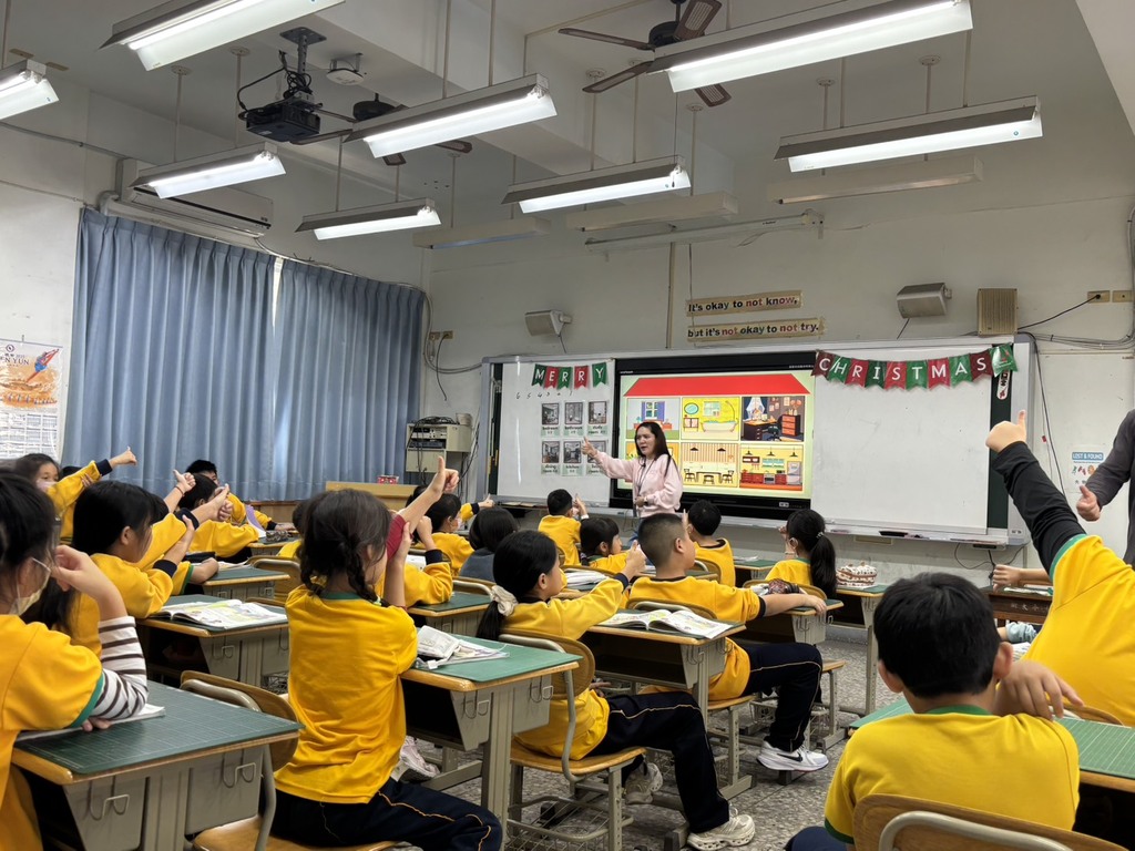 在外籍教師全美語入班教學下,課堂以趣味猜謎活動揭開序幕,引導學生在輕鬆無壓力的情境中接觸英語,逐步消除對英文的陌生與害怕。透過中英協同教學與分組合作學習,孩子們在同儕互助的鷹架支持下,更敢開口嘗試、不怕犯錯,願意主動參與討論與回應。課程中,學生專注投入、踴躍舉手,以英語與老師自然應答,展現學習信心與英語溝通能力的成長。