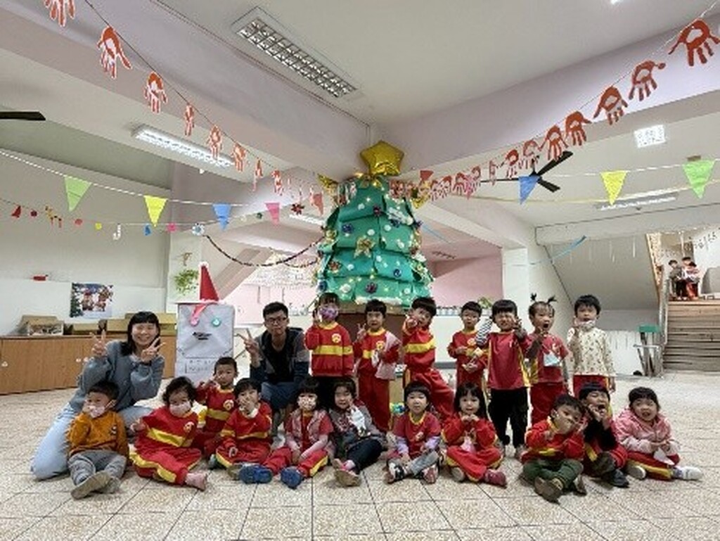 每年在聖誕節發生的故事,一直都充滿了感恩與溫暖,今年的南屯幼兒園也是如此,2025的聖誕節,一場與南屯幼兒園全園一起冒險的故事開始了,故事的開始源自於孩子的想像,在每天都會經過的中庭,我們正思索著今年聖誕節的佈置,聖誕節少不了的就是一棵聖誕樹,要怎麼做出能讓看到的孩子、經過得大家都能會心一笑的聖誕樹呢?在大家絞盡腦汁仍陷入瓶頸時,有位孩子突發奇想地告訴老師:「這個柱子連在椅子上好像一棵樹喔!」雖然只是孩子天真的發想,但卻啟發了老師的思考,於是老師便著手帶著啄木鳥班的孩子們開始規劃與設計我們的聖誕樹!