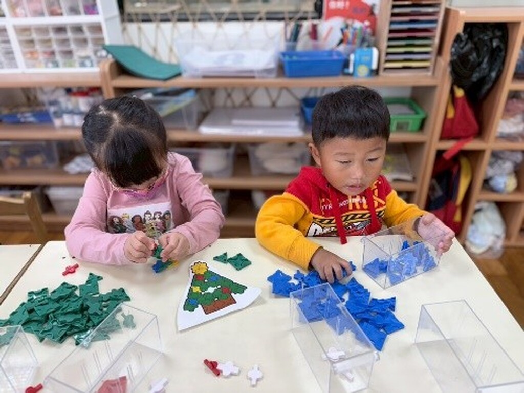 完成整個中庭的聖誕佈置後,我們聖誕樹也成功讓每位經過的孩子與大人都能會心一笑,每個人都很喜歡這棵大樹的樣子,啄木鳥班幼生張翊佑說:「在做聖誕裝飾的LAQ時做不出來,老師有幫忙我們一起做,能夠看到飛飛的啄木鳥郵差也很開心。」啄木鳥班幼生盧宣語說:「積木圍在旁邊保護的石頭白白的很乾淨,我們有幫忙撿石頭,老師有洗石頭。」啄木鳥班幼生張芷綺也分享:「很精彩!我們大家一起串的彩帶很漂亮!老師做的聖誕樹讓我們很開心!」