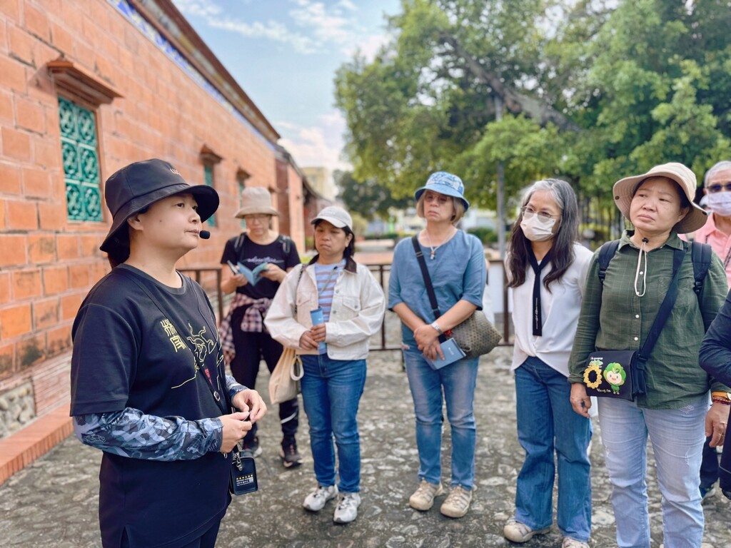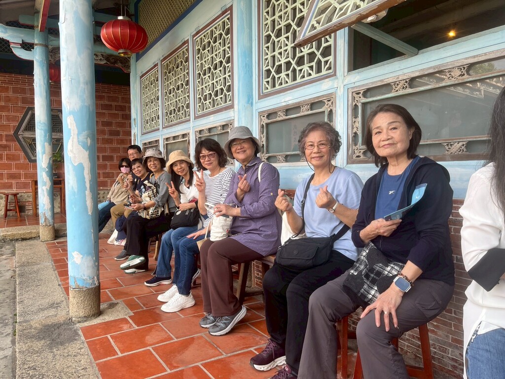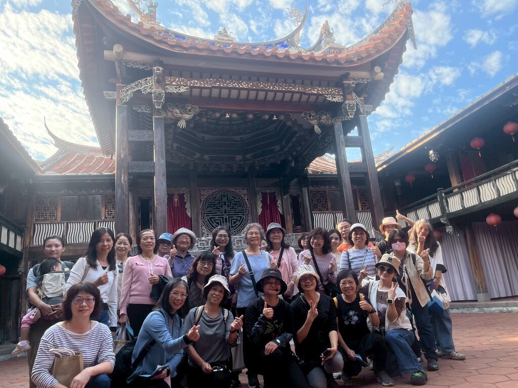 這趟旅程的高潮出現在尾聲——霧峰林家第九代後人驚喜現身!學員們難掩興奮,能在歷史建築中與家族後代交流,讓這場參訪多了一份厚實的溫度。最後,全體學員在宮保第前留下了珍貴的大合照,每個人的臉上都洋溢著收穫滿滿的笑容。