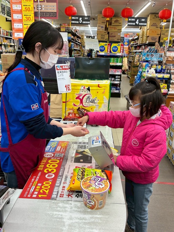 慢飛天使們各自拿著採買的物品,準備好金額,要來自己結帳了,藉由這個機會也順便複習課堂上老師教過的紙鈔和硬幣,熟悉日常生活中的消費行為。「請支援收銀」店內廣播響起,貼心的員工為我們開了一條專用的結帳通道。「嗶」一聲,孩子們拿給店員掃碼、確認金額、用準備好的錢付費、收好找零的錢,他們終於完勝「購物小幫手」這項任務的挑戰。特教老師華緻說:「這次校外教學體驗讓學習從教室延伸到社區,也讓孩子建立『我也能做到』的自信心。」