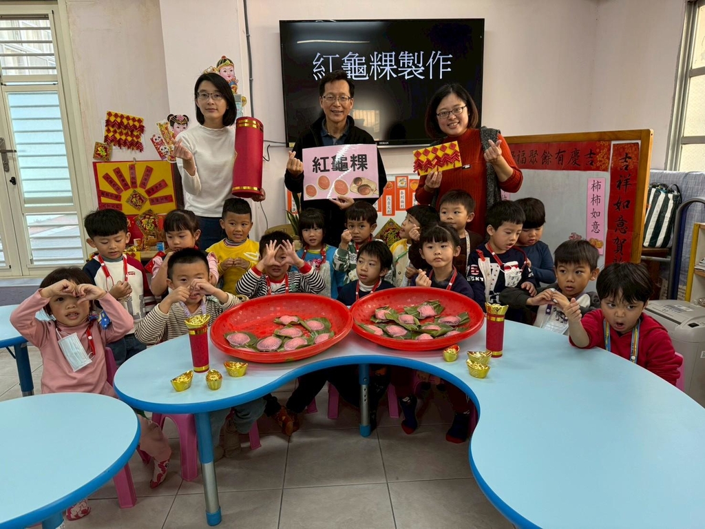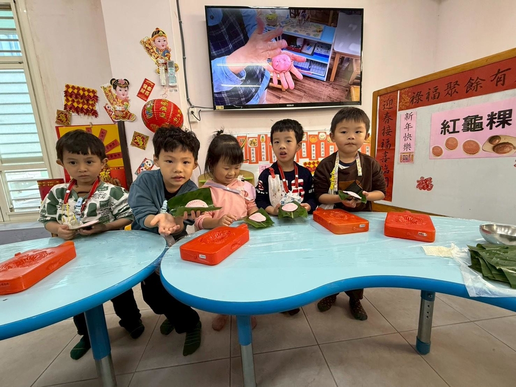 為迎接新年並深化幼兒對傳統文化的認識,本園於1月12日至14日辦理「迎新年巧手做紅龜粿」系列活動,透過完整且有系統的課程安排,讓幼生在生活體驗中學習與成長。