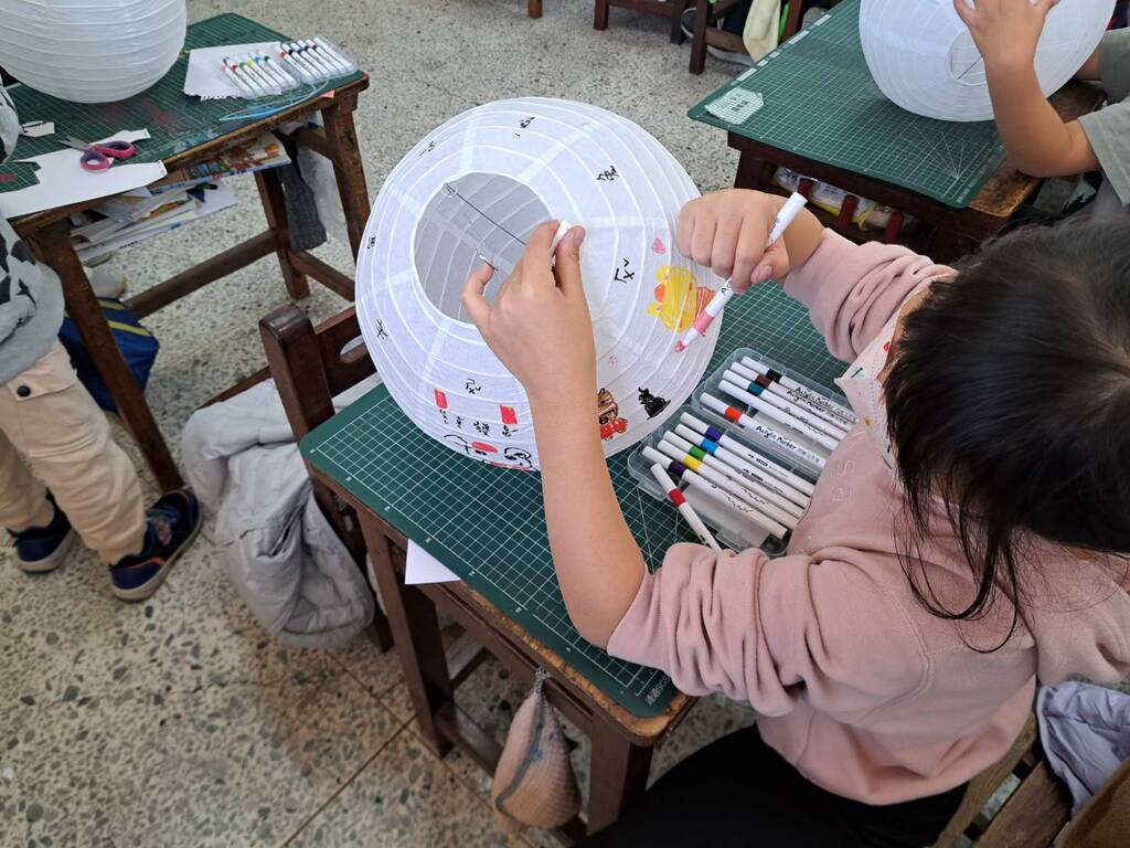 走進教室,只見學生們個個埋頭苦幹,拿著彩色筆在圓滾滾的紙燈籠上「揮灑青春」。原本平淡無奇的白色燈籠,轉眼間變成了燦爛的彩虹、可愛的卡通人物,還有充滿童趣的幾何圖型。有的學生畫得精細如繪本,有的則是豪邁地塗鴉,笑聲與討論聲此起彼落。