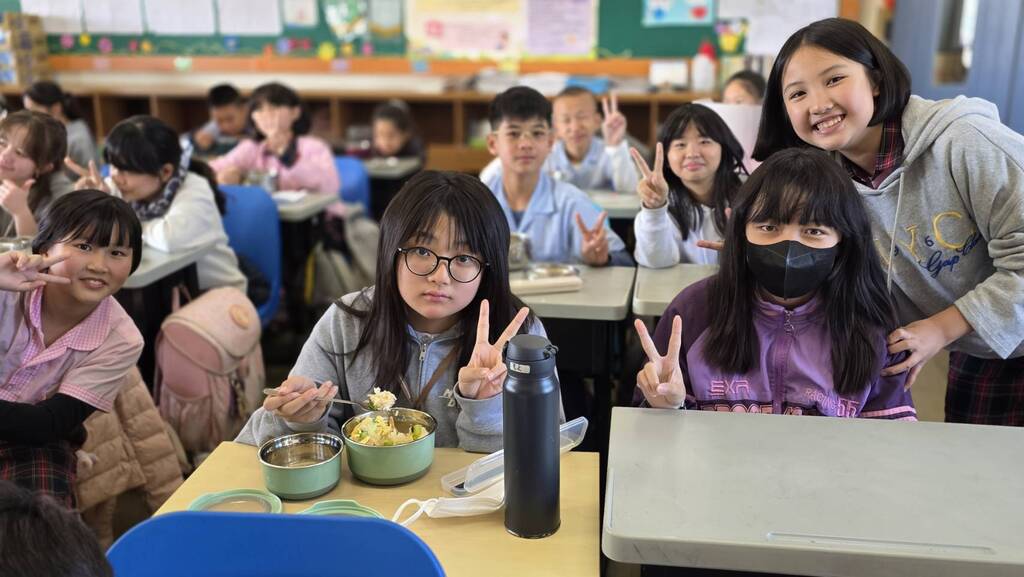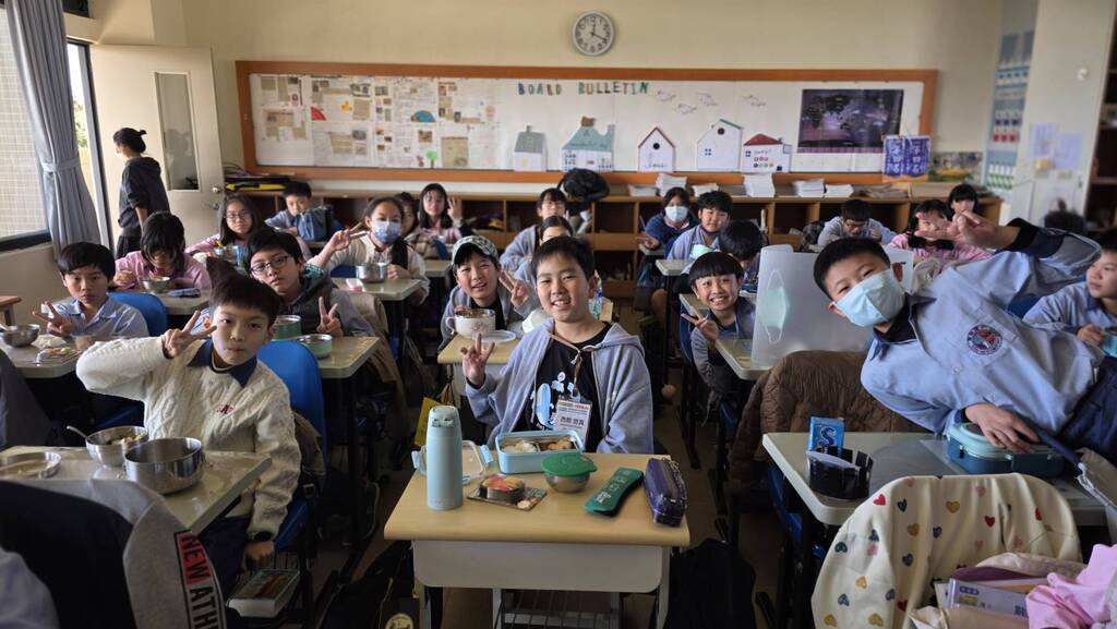 在 School Day 的行程中,日本明星學園的學生也實際走進東海國小的日常校園生活,體驗臺灣學校的一日學習。中午時分,臺日學生一同享用學校營養午餐,從排隊取餐、用餐禮儀到餐後整理,親身感受臺灣校園的飲食文化與生活節奏。孩子們一邊用餐、一邊交流彼此的飲食習慣,氣氛輕鬆又溫馨。