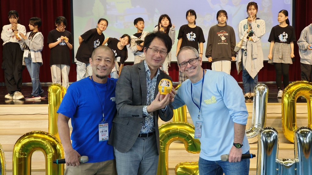 到了離別的時刻,林筆藝校長送上充滿臺灣特色的伴手禮與小禮物,祝福明星學園的孩子們一路平安。當遊覽車準備出發時,東海國小的學生們自發排成一列,在校門口用力揮手、齊聲道別,眼眶紅紅卻笑得燦爛。而日本老師也特別贈送東海國小一隻象徵 2025 年交流的達摩,並為達摩畫上眼睛,象徵這段交流圓滿完成。