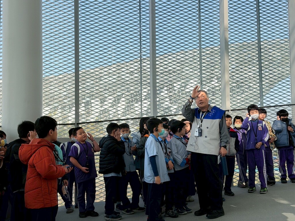 行程中,孩子們也隨意走入圖書館空間參觀,體驗不同於校園圖書館的閱讀場域設計。綠美圖圖書館以開放式動線、挑高空間與自然採光,模糊了「展覽、閱讀與休憩」之間的界線,讓閱讀不再侷限於書桌前,而是成為一種自在、流動的生活體驗。