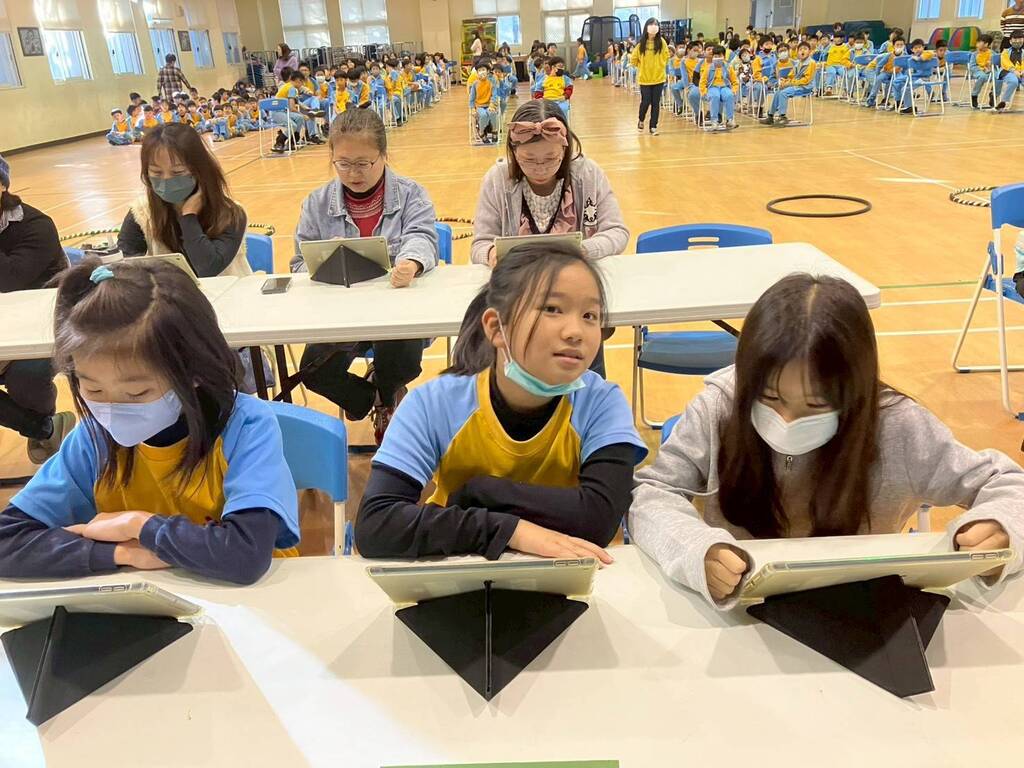 活動現場,學生專注操作平板、積極討論作答,教師則在一旁適時引導與鼓勵,營造出支持又互動的學習氛圍。其中一位到場支援,擔任魔王的媽媽表示:「孩子回家一直跟我分享比賽內容,還主動教我成語,真的感受到她學得很投入。」