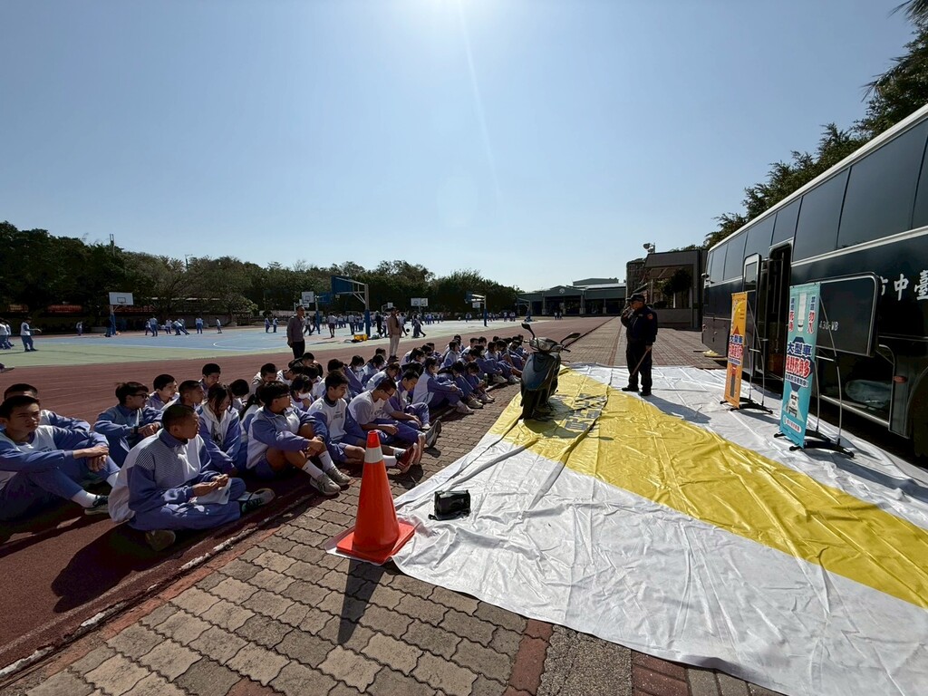為了讓交通安全不再只是口號,沙鹿國中特別攜手台中區監理所,邀請賴秋如科員走入校園。活動現場不只有叮嚀,更將大型大客車駛入校園,讓學生親身實測「視覺死角」的恐懼感。 透過震撼的轉彎內輪差示範、正確配戴安全帽的教學,以及單車安全騎乘實務,同學們紛紛表示:「原來大型車轉彎這麼危險!」校方期許透過這場「沉浸式」的宣導,將交通安全內化為行為習慣,讓孩子們都能「快樂出門,平安歸來」。