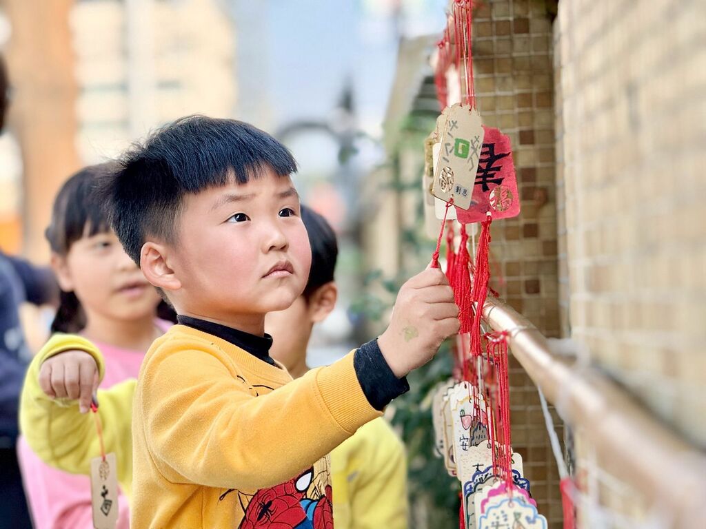 教務組長蕭文嘉說:「本學期最後一項全園性活動—祈福許願卡正式展開,邀請大家將對 2026 年的願望 一一寫下來。透過書寫與分享,讓彼此知道在新的一年裡,不只是期許成長,更能為自己設定目標,勇敢朝夢想前進。我們將一張張滿載祝福與希望的許願卡高高掛起,象徵將心中的期待交付天地,也提醒自己用行動一步步實踐。孩子們純真的願望,映照出對未來的美好想像;而大人的心願,則蘊含對生活、家庭與工作的溫柔期盼。 在祈福的過程中,我們不僅為彼此祝願,也共同展望新的一年。期盼 2026 年,每一位孩子都能平安長大、快樂學習;每一位大人都能心有所向、行有所成,在愛與陪伴中,攜手走過 幸福美滿的一年。」園長陳議濃說:「新年許願卡的設計概念,除了讓孩子以藝術創作的方式表達心願外,也將這些作品轉化為校門口充滿年味的風景,打造出獨特又溫馨的正門許願牆。希望在新的一年裡,大家都能越來越好,心中的願望也能一一實現。」