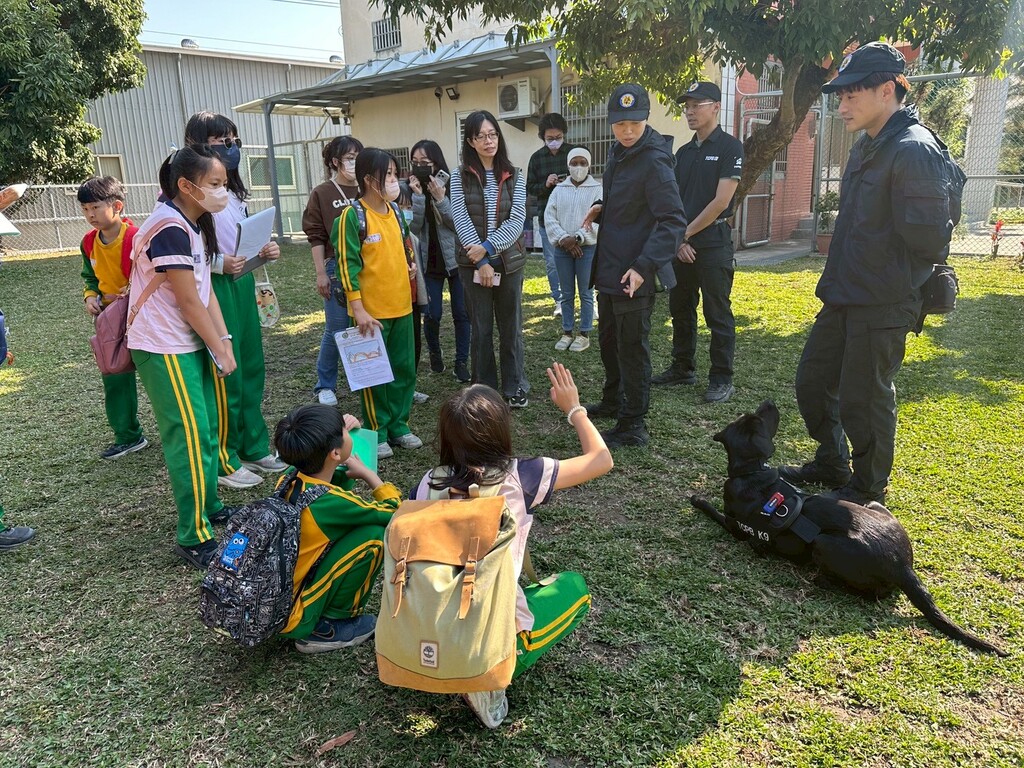 翌日,師生前往臺中市政府警察局警犬隊,透過警犬訓練與勤務展示,學生近距離認識英勇又可愛的警犬 Idol 與 Volvo,了解警犬守護社會安全的重要使命,深化生命教育與紀律精神的學習。學生 Issac 表示:「警犬看起來很可愛,可是一工作就很認真,我知道牠們每天都要訓練,才能保護大家,覺得牠們很辛苦,也很帥氣。」