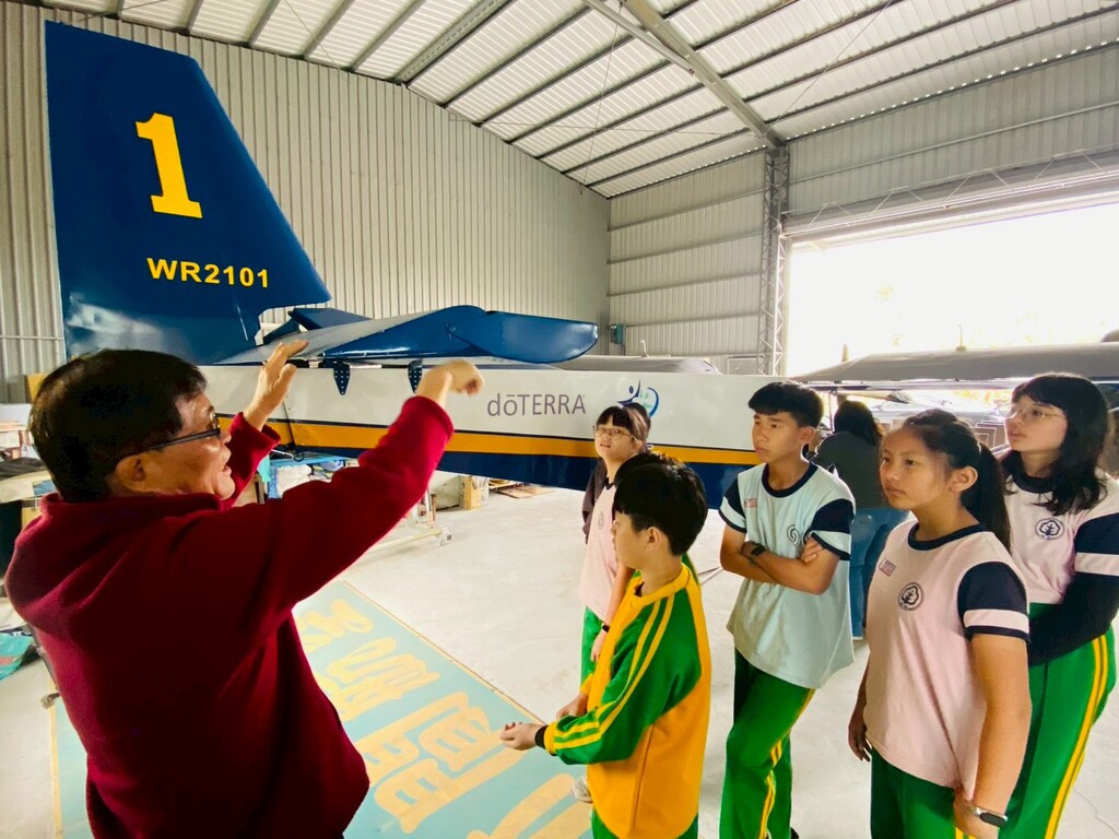 本次活動為落實雙語教育政策並深化學生在地學習而規劃。活動首站來到座落於烏溪河畔的輕航機基地,在李教官專業且生動的導覽與情境式解說下,學生認識飛行原理、航空科技與相關產業發展,並初步了解航空領域多元的職涯可能性。學生 Joanne 分享:「我第一次到輕航機基地,才知道飛機為什麼可以飛起來。用英文跟老師討論時一開始有點緊張,但後來發現講錯也沒關係,讓我比較有自信。」