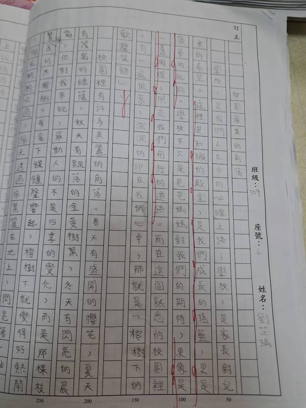 抽查過程中,主任最受觸動的是老師們悉心的評語。每一份作業的角落,都記錄著導師與孩子之間的悄悄話。有的老師勾選著「觀察力敏銳」、「用詞精確」;有的則是在段落旁留下長長的鼓勵。這些深淺不一的紅字,是老師犧牲課後休息時間,一字一句批閱出的心血,更是孩子進步的推手。