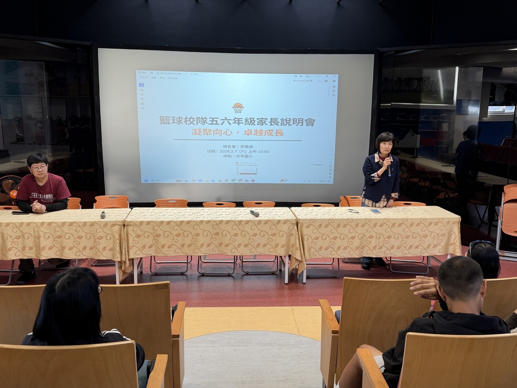 2/7(六)周末上午,太平國小籃球校隊在航空館舉行了五、六年級大小隊家長交流說明會,爸爸媽媽們特別犧牲寶貴的休息時間,準時出現在學校,看著座無虛席的會場,我們感受到的是家長對孩子夢想最堅實的支持。