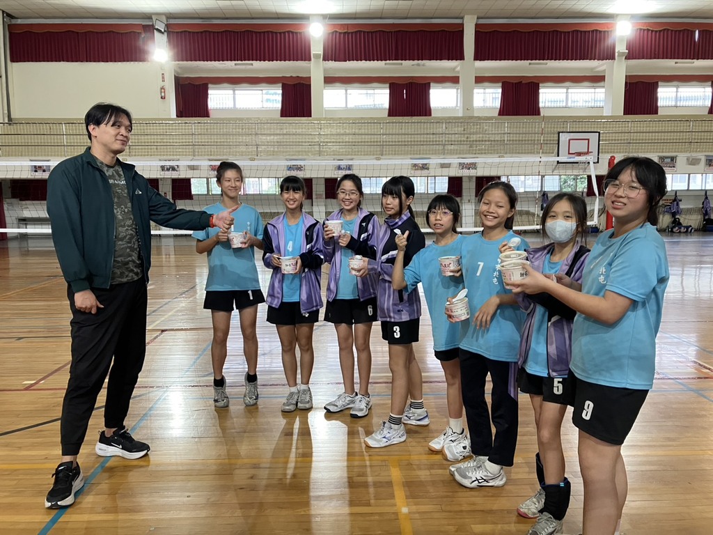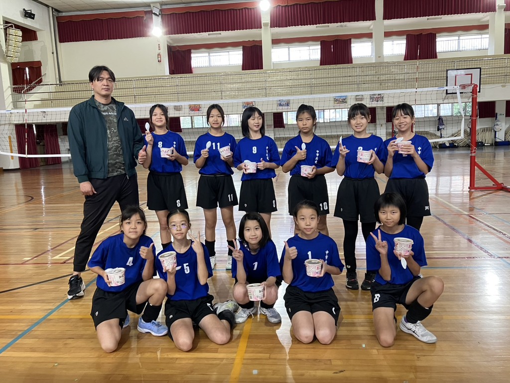 「謝謝教練…」北屯國小排球隊的孩子們,開心地謝謝教練。北屯國小排球隊將教練深受家長及學生的愛戴,逢此元宵節時刻,自掏腰包請孩子們吃湯圓,吃湯圓 心甜甜—大家互助「元宵節快樂」!