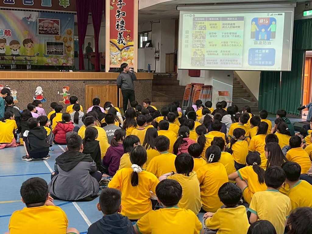 3/3(二)今天下午在學校體育館,充滿了高年級同學專注聆聽與熱烈互動的身影!學務處芷源老師特別舉辦了114學年度友善校園宣導講座,並擔任主講,針對「交通安全、性別平等、霸凌防治」三大核心主題,帶領孩子們建立全方位的自我保護意識。