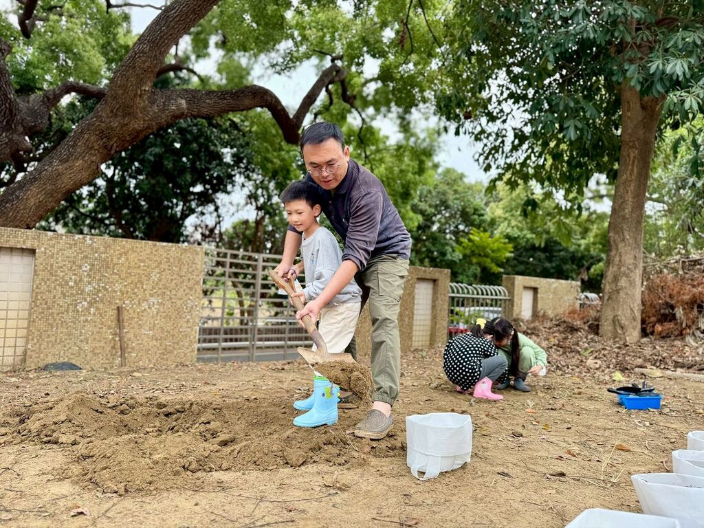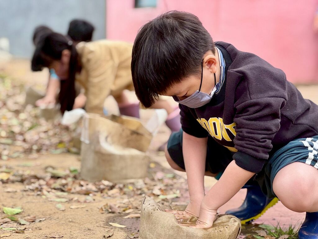南屯幼兒園在上學期種植、細心照顧了整整一個多學期的地瓜,終於預計在這週(6日)迎來收成。師生們都滿懷期待,歷經百餘日的陪伴與等待,終於要迎接努力耕耘後的成果。依照往例,大家會親手將地瓜一顆顆挖出,清洗、包裹後,迎來整個活動的最高峰—烘窯烤地瓜,與全園師生一同分享收成的甜美滋味。不過,在這之前還有一件更重要的事情要先完成。由於學校的土質多為砂石,無法像田土那樣自然結成土塊,因此必須提前製作土塊,為下一週的烤地瓜做好準備。而這次做土塊的重要任務,就交由山羌班負責,目標是做出最堅固、最好用的土塊。