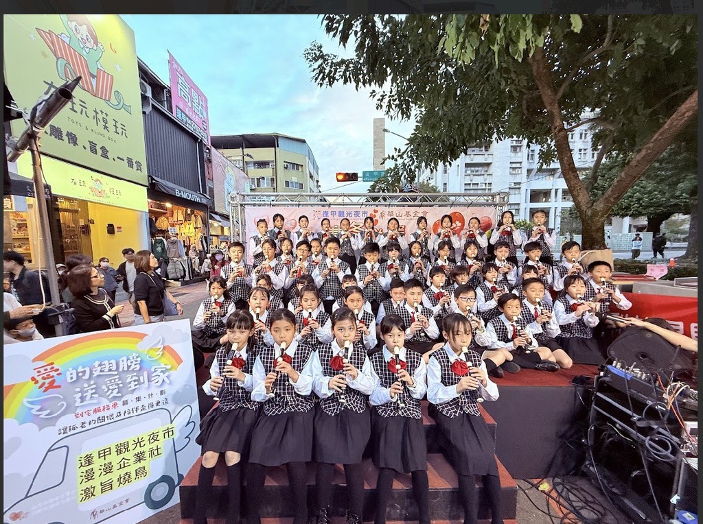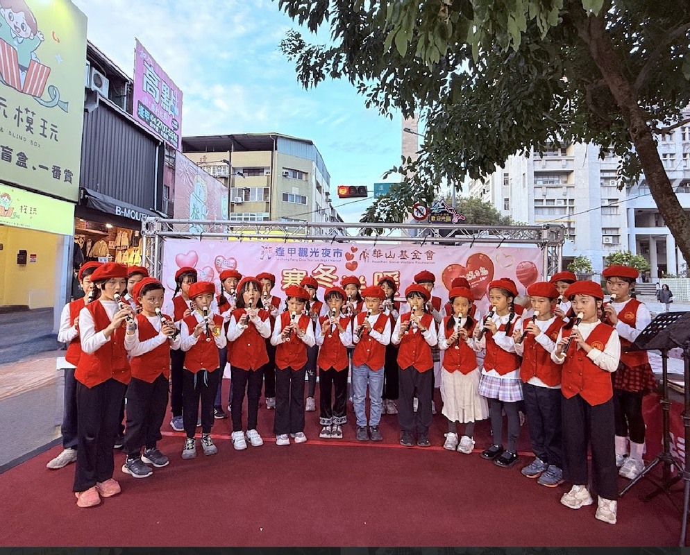 當悠揚的直笛旋律在人聲鼎沸的逢甲觀光夜市響起,這不只是一場音樂表演,更是一份傳遞到長者心坎裡的溫暖祝福。西屯國小直笛團於日前參與「2025愛老人 愛團圓~逢甲觀光夜市 × 華山基金會」寒冬送暖公益活動,孩子們走出校園、走進社區,用手中的直笛化作愛的橋樑,讓美感教育轉化為實際的社會關懷。