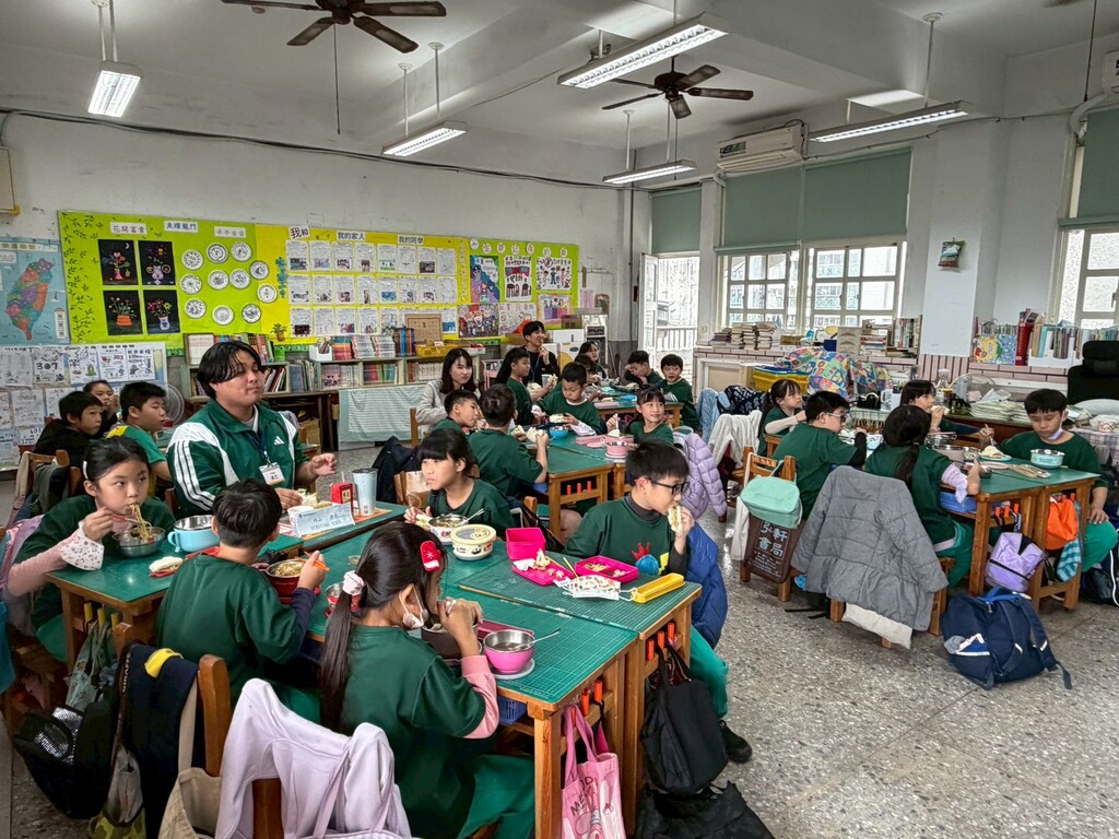 課堂上,孩子們興奮地學習基礎日語打招呼,並驚喜地發現原來心愛的動畫角色源自日本;談到壽司與拉麵時,教室內更是迴響著「我也吃過!」的熱烈討論。透過第一線的互動,教科書上的知識變成了生動的感官體驗,孩子們在笑聲中播下了對多元文化好奇的種子。