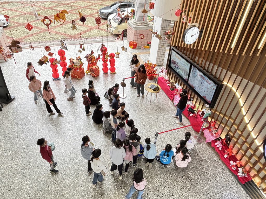 學生們在寒假期間發揮巧思,利用手邊的回收材料,如舊紙盒、寶特瓶及廢棄包裝紙,親手打造出一個個別具特色的燈籠。當這些燈籠懸掛在校園光之川堂時,色彩繽紛、造型各異,形成「萬馬奔騰」的景象,充滿了生命力。