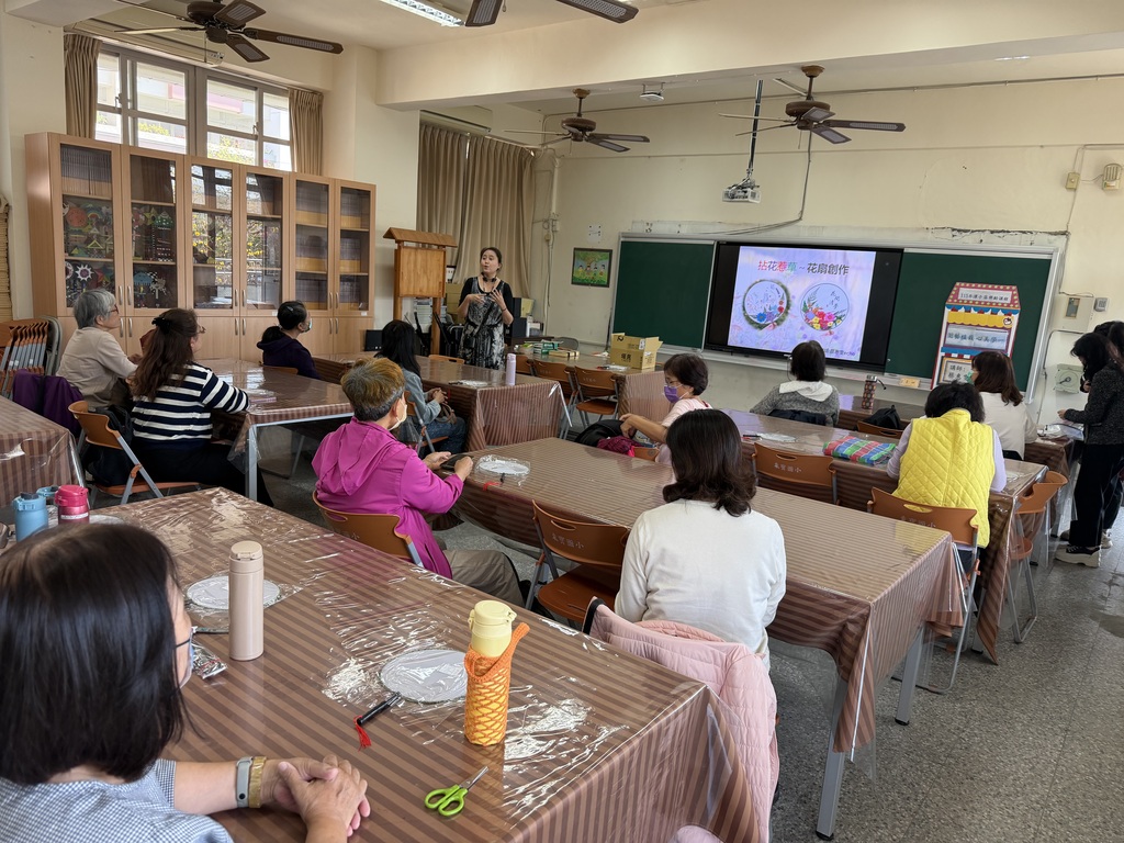 潭子區樂齡學習中心115年度在東寶國小的課程3/18日正式開課,邀請園藝講師蔡惠雯老師前來為樂齡學員們上課,一早九點之前學員們便陸續抵達東寶樂齡教室,完成簽到就座後,開始了今日2小時精彩課程。這一期樂齡規劃的三堂課,分別為壓花創作、香草浴鹽DIY及蘭花栽培,學員經講師仔細講解及領取材料後,便開始手作,大夥發揮創意,最後都完成了獨一無二的精彩作品。