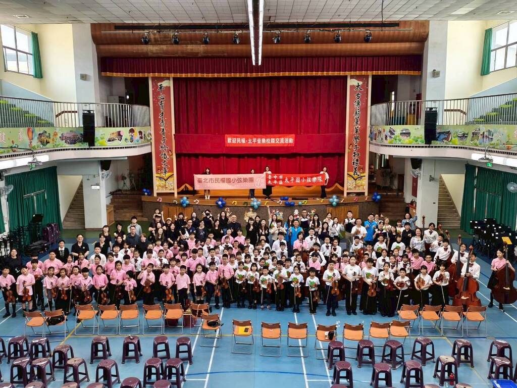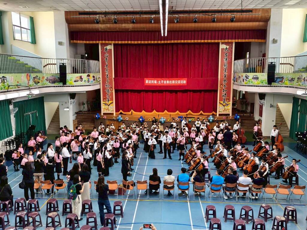 3月20日(五)的上午,太平國小的體育館充滿了悠揚的琴聲與孩子們的歡笑。學校非常榮幸迎接遠道而來的臺北市松山區民權國小弦樂團ABC三團師生來到太平,兩校弦樂團隊進行一場深度且動人的音樂交流盛宴!